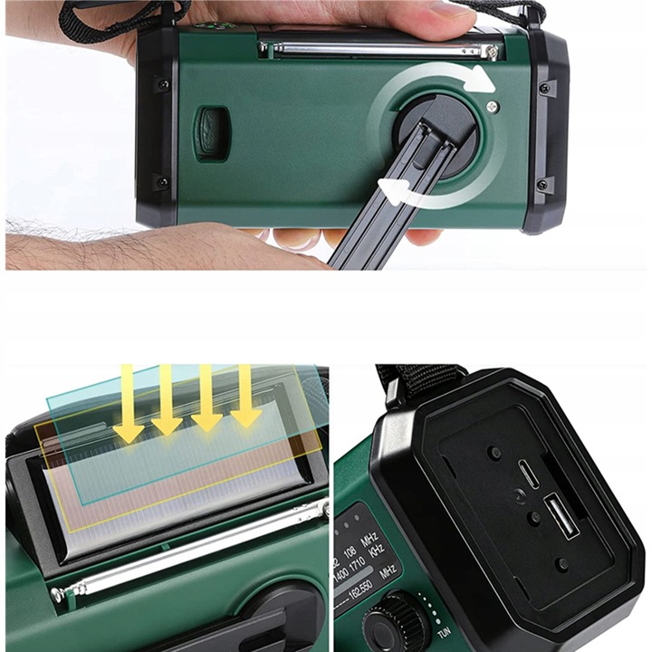 - ✅аварійний ліхтарик і дуже активна Сигналізація SOS - - - для сонячного радіо він має альтернативні режими ліхтарика 3,3 Вт і світло читання 1,3 Вт. Сирена SOS може бути виведена з будильника, щоб швидко привернути увагу і звернутися за допомогою. Компас допомагає вам не загубитися.Чи> вулик>