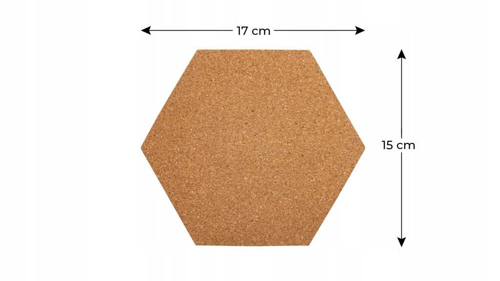 пробкові дошки шестикутної форми - це функціональне, але стильне оздоблення стін. Використовуйте в кімнаті дитини / підлітка як простір для самовираження, повісьте в спальні як доповнення до кімнати або місце для прикріплення рахунків або важливої інформації. Набір з 10 пробкових форм також буде відмінним обладнанням для офісів, ресторанів, готелів, службових приміщень або шкіл.