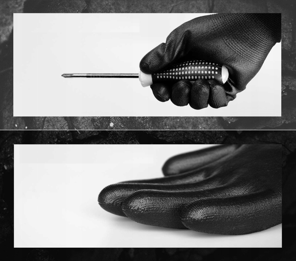 12 пар робочих рукавичок рукавички з чорним поліуретановим покриттям R. 9-L