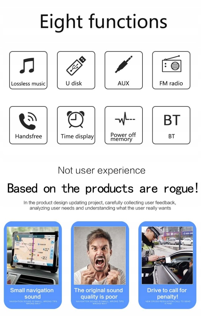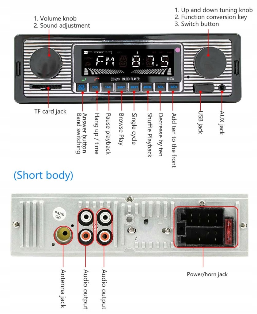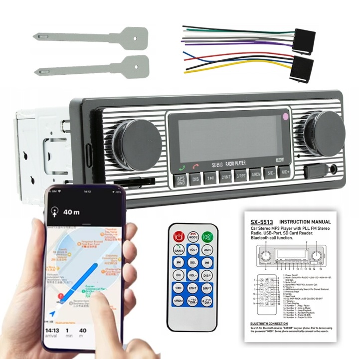 - гучного звʼязку, радіо можна підключити до Bluetooth через додаток, а потім використовувати телефон для бездротових дзвінків, щоб ви могли покласти телефон і вести дзвінки під час водіння(без розʼєму для мікрофона)