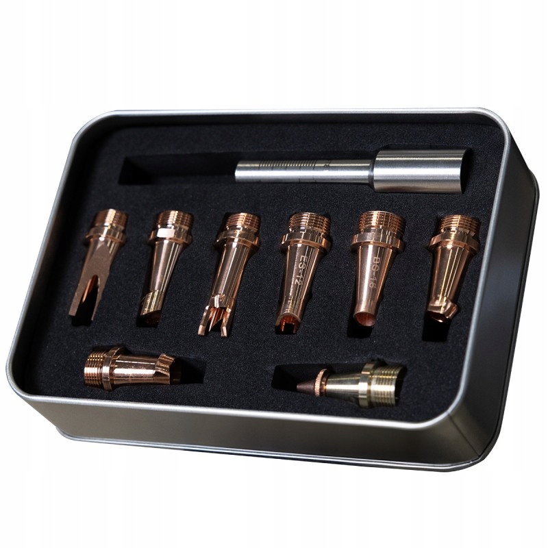 У комплект входить пристрій автоматичної подачі дроту, набір насадок для різних типів зʼєднань і стартовий комплект захисних стекол.