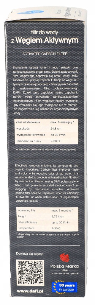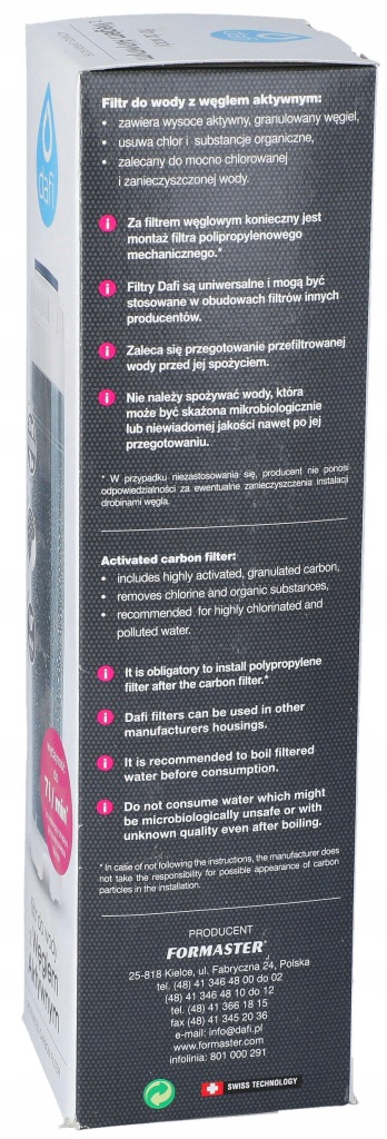- фільтрації на активованому вугіллі рекомендується передувати механічної фільтрації (з використанням поліпропіленового фільтра Dafi)