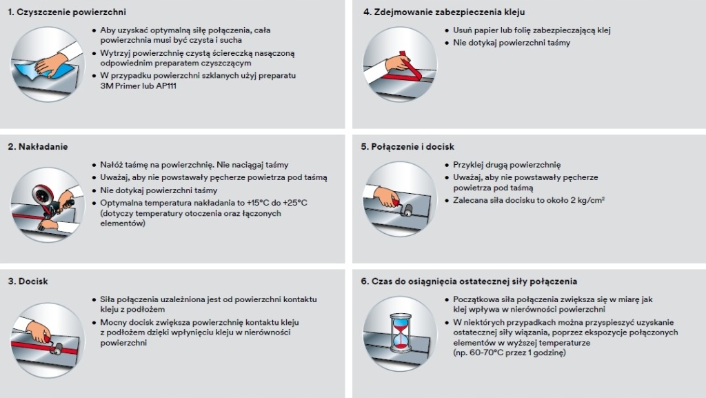 - стрічка повинна застосовуватися при температурі 21-38°C. для гарної адгезії стрічки склеювані поверхні повинні бути чистими, сухими і вільними від конденсату водяної пари