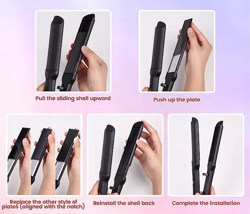 захист пластин-це одночасно ручка, яку можна використовувати для придавлювання волосся.Заміна пластин дуже проста.