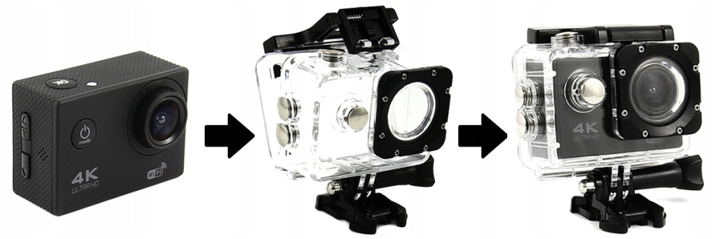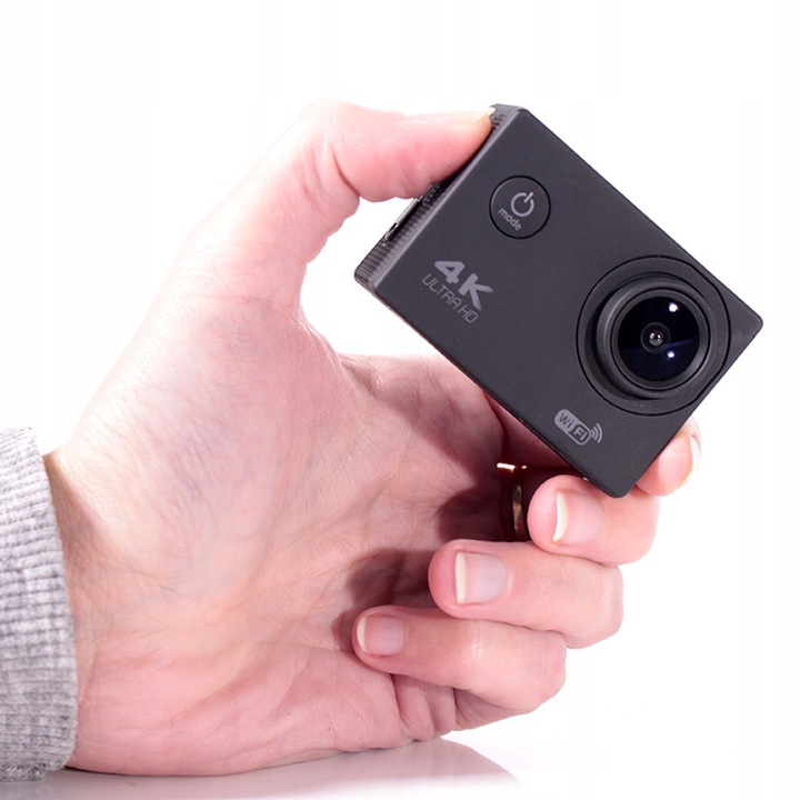 спортивна камера, що знімає зображення у форматі 4K ultra HD. У комплект входять тримачі та підставки для запису в будь-яких умовах, навіть під поверхнею води. Водонепроникність до 30 м.міцний акумулятор і зовнішня памʼять дозволяють записувати багато памʼятних моментів. Він важить всього 54 грами з акумулятором!