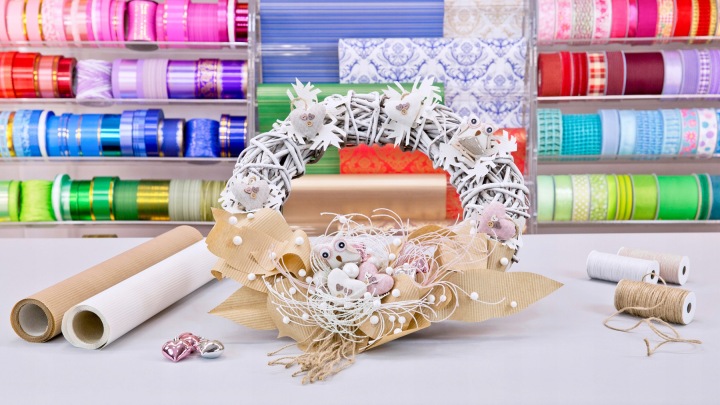 декоративна рифлена папір "одноколірна" також може використовуватися нетрадиційним способом, правильно зімʼята підійде для обгортання вінків з соломи або пінополістиролу.