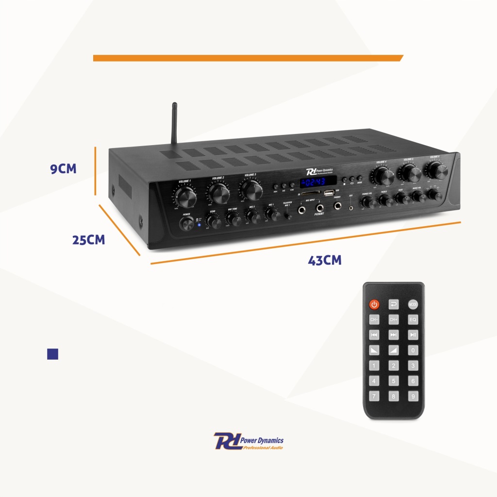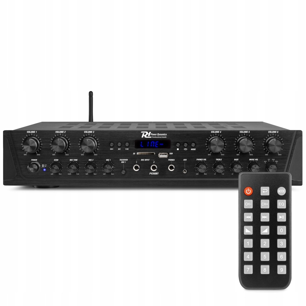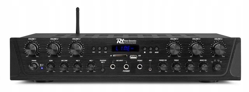 Power Dynamics Pv260bt-це 6-зонний стереопідсилювач, за допомогою якого гучність 6 зон можна регулювати окремо. З PV260BT ви створите багатозонну стереосистему для вашого будинку, офісу, громадського харчування і т. д.