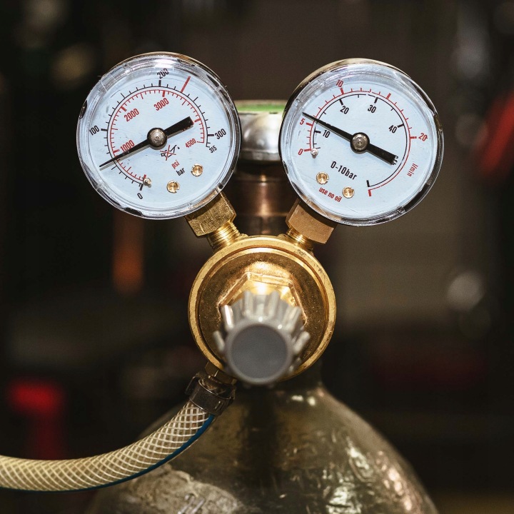 редуктор тиску з різьбленням, що відповідає балону з аргоном або вуглекислим газом (CO2). Найчастіше використовується при зварюванні при зварюванні мигоматом, напівавтоматом або зварювальними апаратами TiG, для яких потрібна газова оболонка у вигляді аргону або вуглекислого газу. Він оснащений двома манометрами-перший показує тиск в балоні, другий-витрата газу в хвилину.