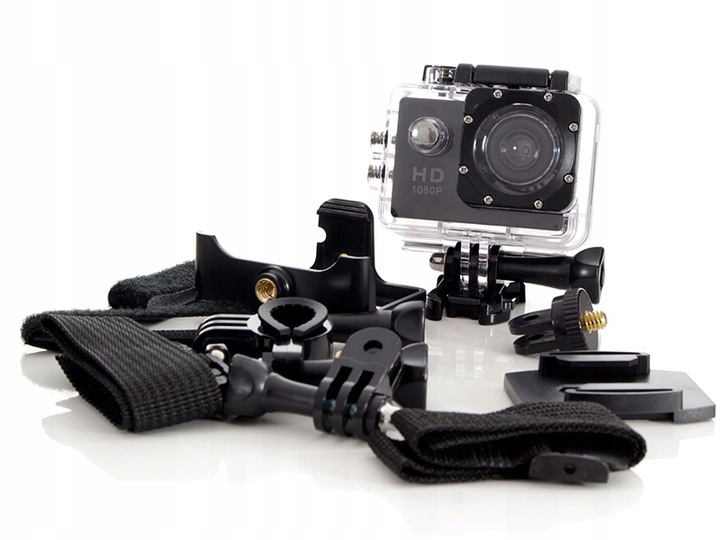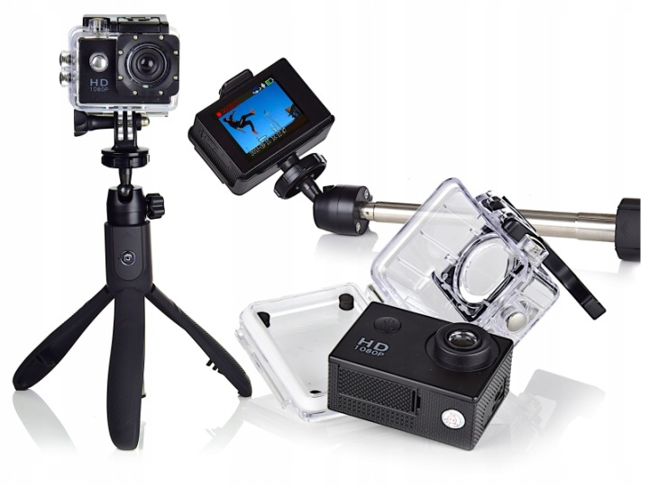 спортивна камера захоплює зображення в якості 1080p Full HD. У комплекті ви знайдете тримачі та підставки для запису в будь-яких умовах, навіть під поверхнею води. Водонепроникний до 30 м під водою і працює на висоті: 8 848 m