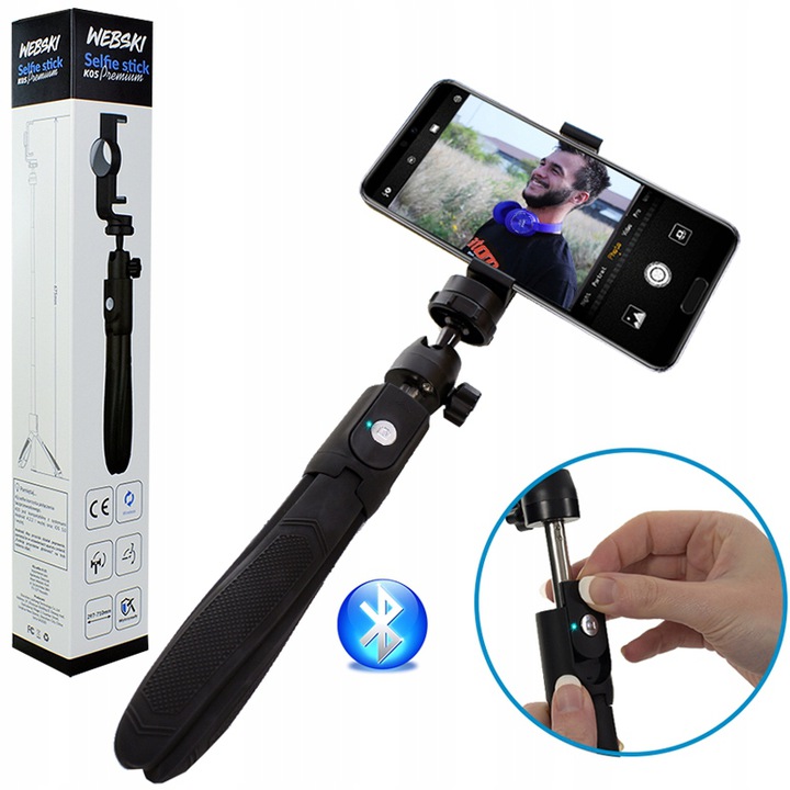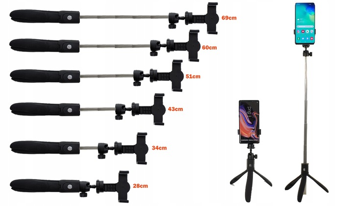 це гаджет, який зробить ваші фотографії завжди добре. Завдяки легкому і стійкому дизайну ви можете взяти його з собою куди завгодно. Фото кадри з його допомогою завжди будуть успішними, крім того, є дзеркало. Тримач підключається до телефону через bluetooth(працює тільки з телефонами).невеликий пульт дистанційного керування дозволяє робити знімки з великої відстані до 10 м.палиця має три відкидаються стійкі ніжки. Він має регулювання довжини і поворотну головку на 360 градусів, що дозволяє легко розмістити телефон в зручному положенні.