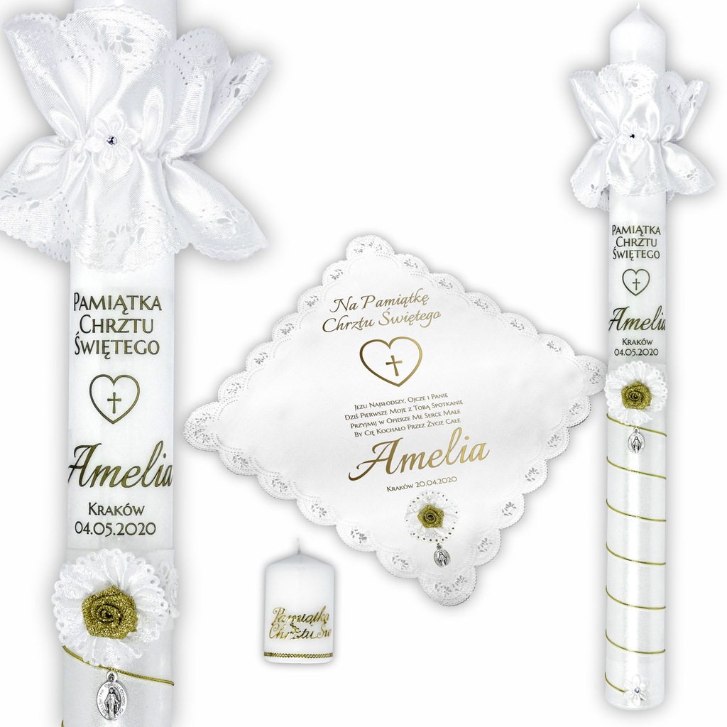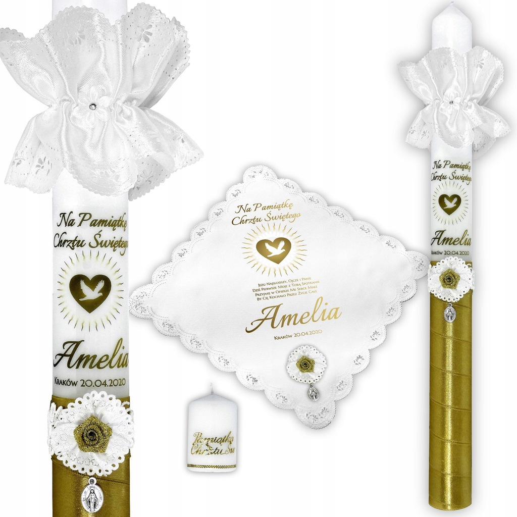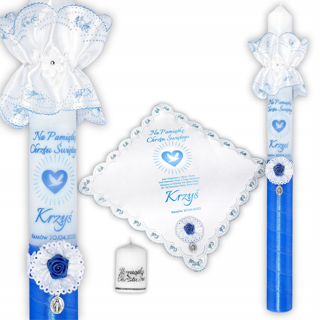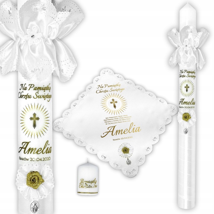 в комплекті у нас є для вас Свічка Ручної роботи разом з кольором підібраним атласним перком (поділ перка в рожевому, синьому і білому) і атласною хусткою з високоякісного матеріалу. Крім того, до кожного купленого набору в подарунок додаємо невелику свічку, яку можна поставити на стіл під час прийому після святкування Хрещення.
