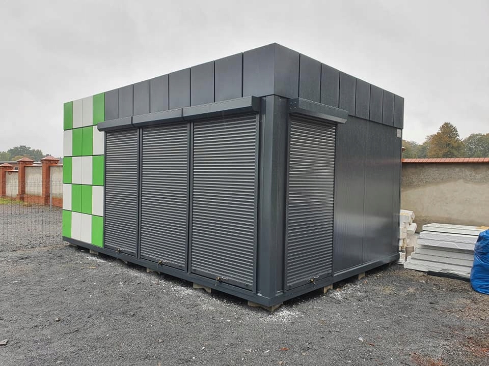 • дах: сендвіч-панель з пінополістирол товщиною 100 мм з термічною проникністю 0,38 Вт/м2К