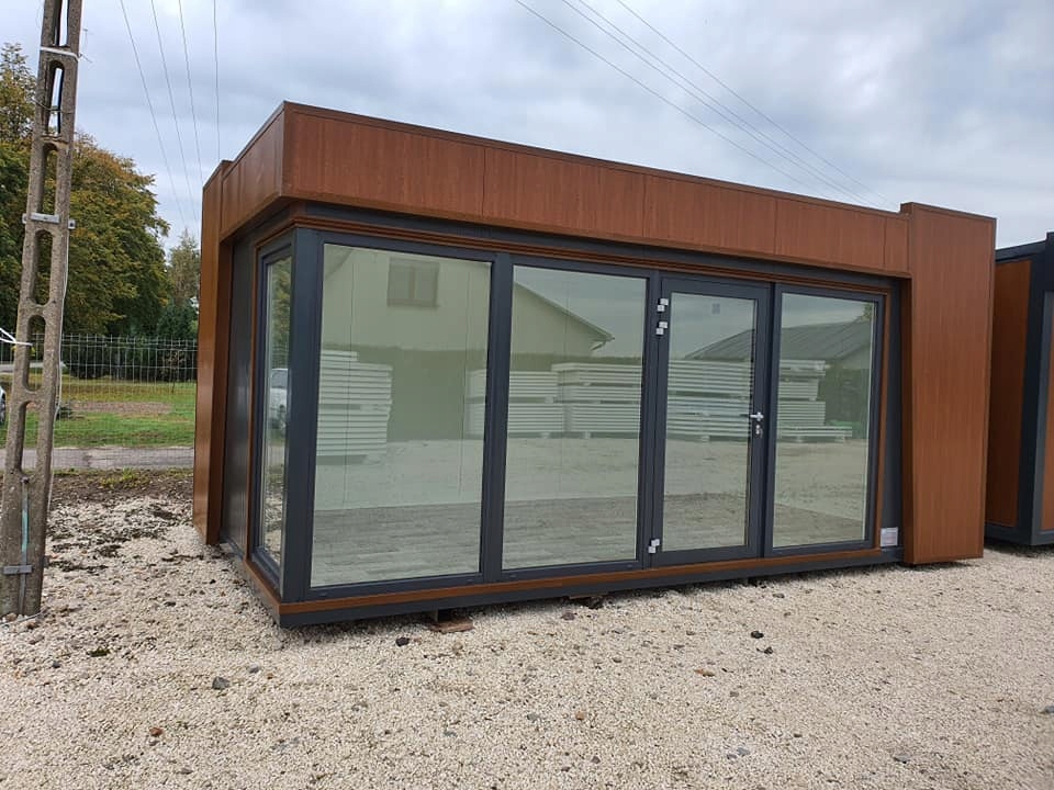 • підлога: сендвіч-панель з пінополістирольним сердечником товщиною 100 мм, термічною діелектричною проникністю 0,38 Вт/м2К додатково посилена OSB і закінчена ПВХ-облицювання