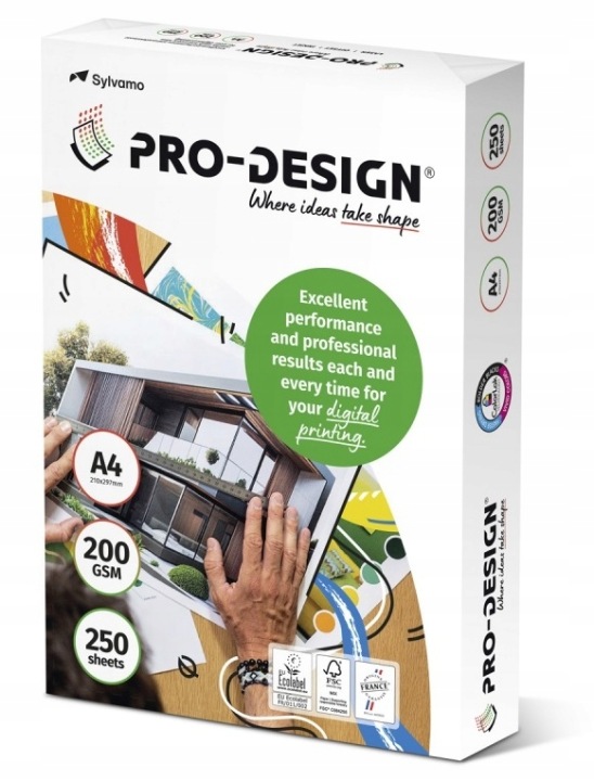 PRO-DESIGN - це сатинована папір з високою білизною і ідеально гладкою поверхнею, призначена для кольорового цифрового друку. Гарантовано високу якість і професійний друк. Протестовано на принтерах великих виробників цифрових друкарських машин. Виготовлений відповідно до найвищих екологічних стандартів.Приємний на дотик і точно відтворює деталі, красномовно свідчить про престижність. Найкраще підходить для друку, що створює імідж компанії. Атласна поверхня приємна на дотик і забезпечує точне відтворення деталей.