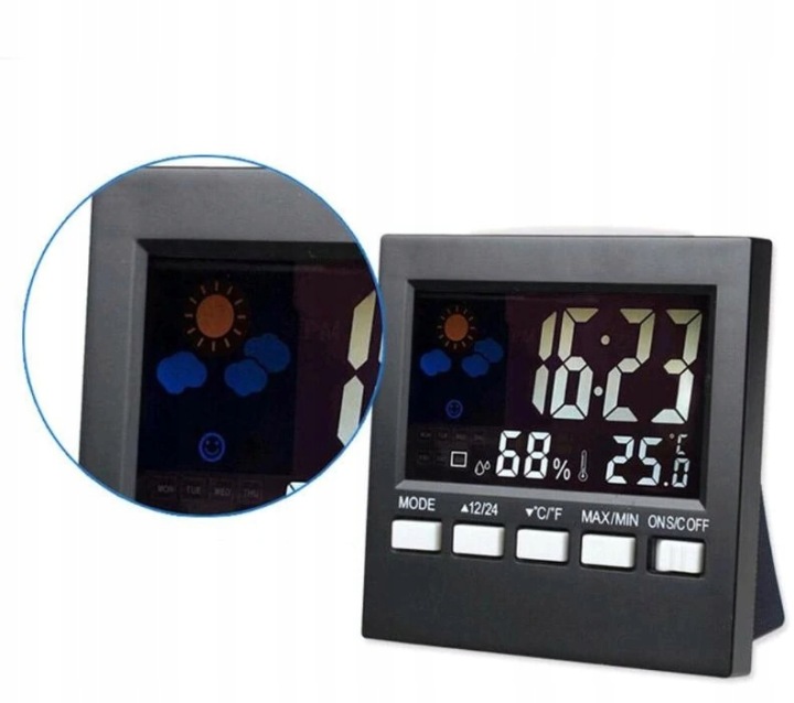 дуже просте управління, за допомогою 6 кнопок на передній панелі ми можемо встановити час, дату і встановити будильник і відобразити мінімальну і максимальну температуру.