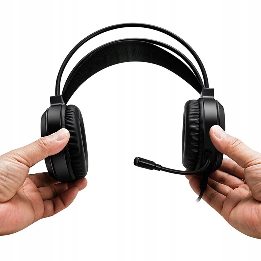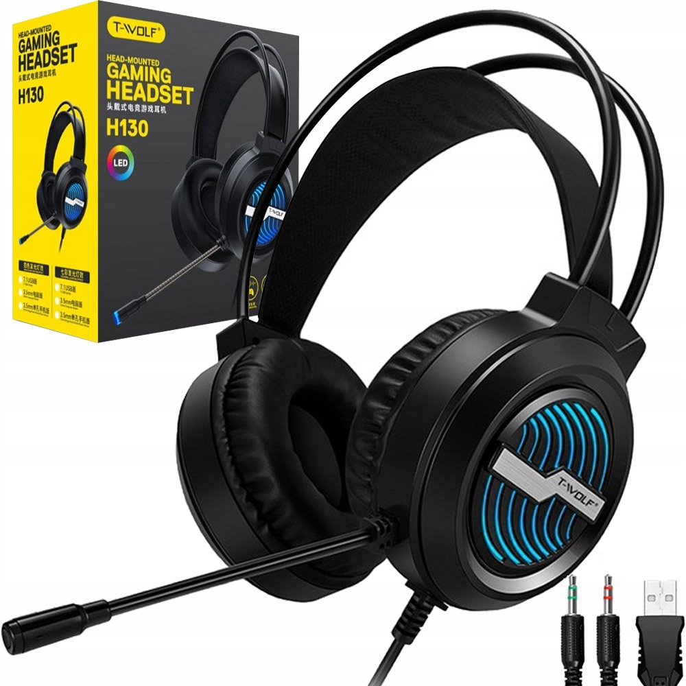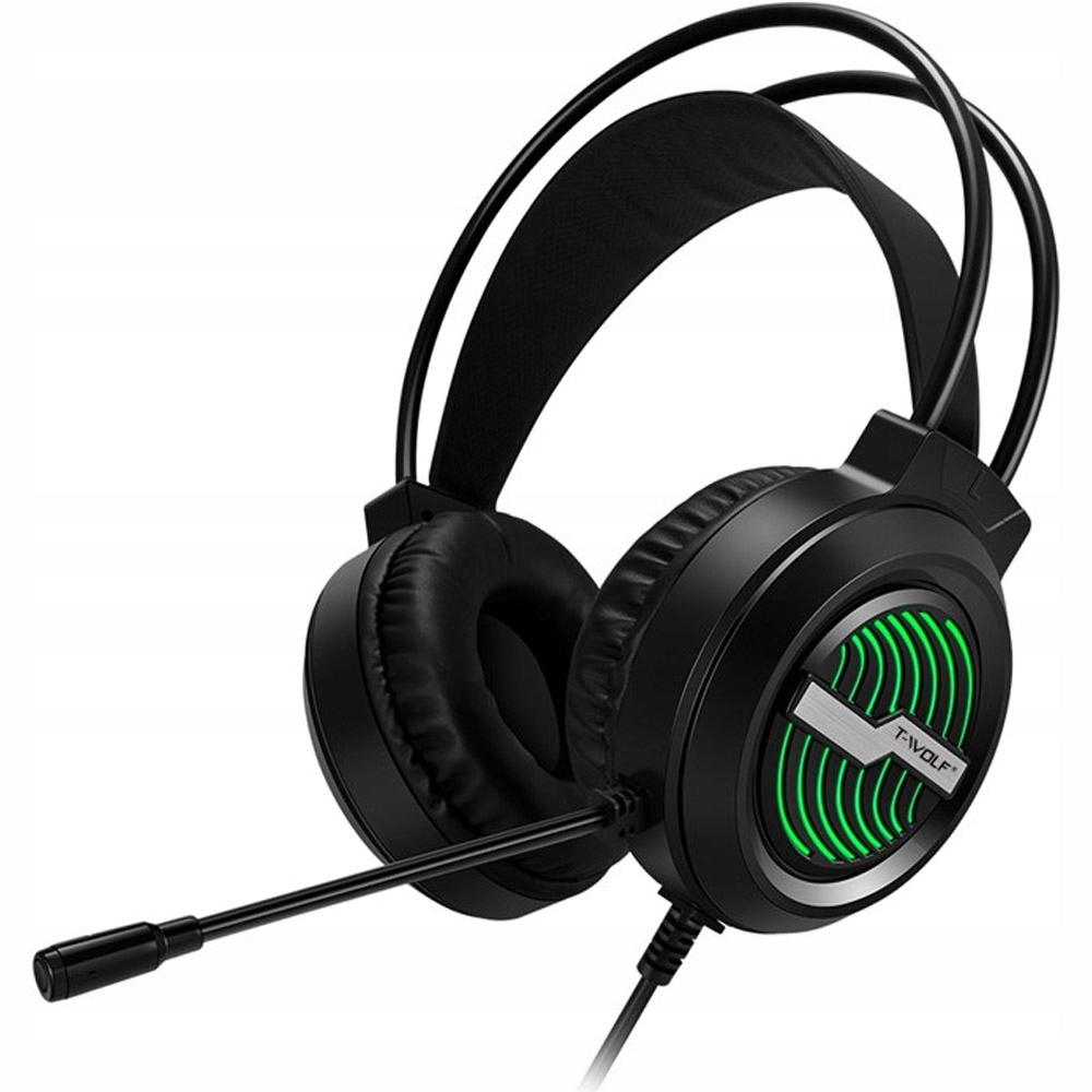ігрові навушники t-Wolf H130 призначені для любителів ігор, вони також будуть працювати під час онлайн-конференцій, віддалених уроків або прослуховування музики. Завдяки спеціальному регульованому ременя, прикріпленому до верхнього оголовью, вони адаптуються до форми голови, гарантуючи високий комфорт використання навіть під час тривалих ігор. Навушники поставляються з великими зручними навушниками, наповненими піною, яка адаптується до форми ваших вух, ідеально ізолюючи навколишні звуки. Драйвери діаметром 50 мм забезпечують природний і чистий звук. Високоякісний мікрофон на гнучкому плечі дозволить передавати ваш голос у високій якості, завдяки чому він ідеально підходить для гри з друзями або важливих розмов. Навушники підсвічуються кольоровим світлом, який циклічно змінюється, створюючи ідеальну атмосферу під час гри. Пристрій підключається до компʼютера за допомогою довгого кабелю довжиною близько двох метрів з двома розʼємами mini jack, призначеними для мікрофона і навушників, і USB-розʼємом, що відповідає за живлення підсвічування.
