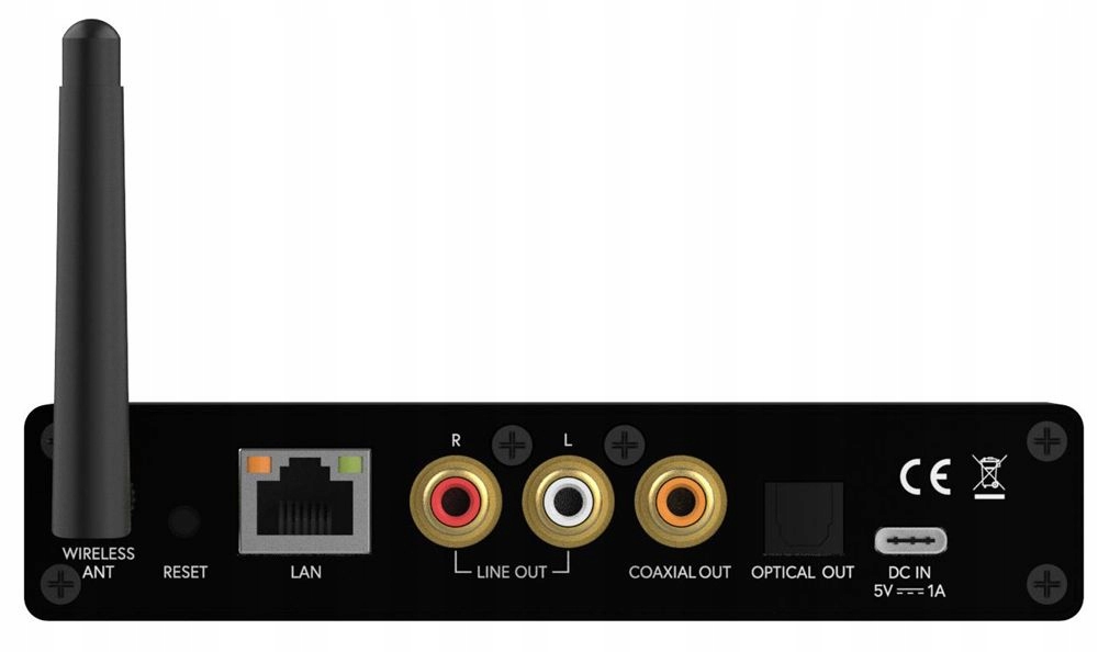 - обладнання: Антена Bluetooth, зʼєднання 2xRCA, адаптер живлення постійного струму, кабель USB-microUSB для живлення