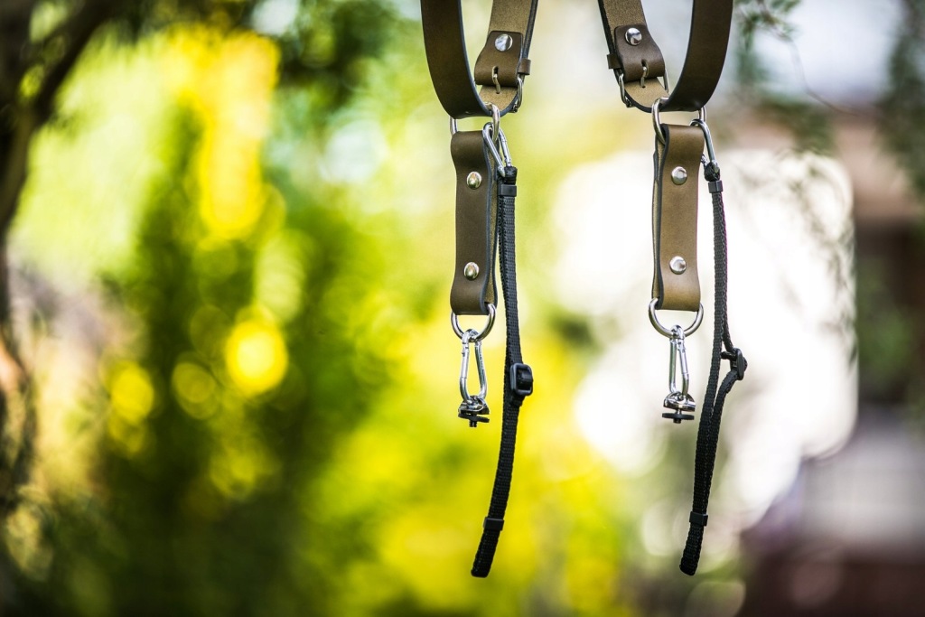 брекети призначені для одного або двох боді. Шкіра в оливково-зеленому, коньяку, коричневому, чорному або темно-синьому має польське походження, має красиву структуру натуральної шкіри і захищена лакованим краєм ременя, що захищає його від зносу. Кріплення камери здійснюється універсальним гвинтом 1/4 " і сталевим карабіном М4, а роль ковзного елемента по шкірі виконує сталеве D-образне кільце. Додатковим захистом камери від відкату є надзвичайно міцна 10-міліметрова стрічка, скріплена карабіном M4. Довжина ременів регулюється за допомогою ряду отворів, а поширення плетіння на спині за допомогою заклепки.