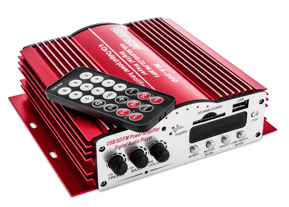 підсилювач має вхід  USB і SD так що ми можемо відтворювати файли з музикою у форматі  mp3.