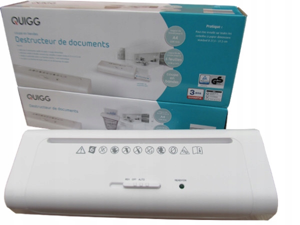 документи не слід недбало викидати у відро для сміття, так як вони містять конфіденційні дані. Ми представляємо подрібнювач Quigg , який відмінно підходить для домашніх господарств і в якості особистого подрібнювача в офісах. Обладнання має рівень захисту P-1 і здатне знищувати до 6 аркушів паперу (80 г/м2) одночасно. пристрій має невеликі розміри, тому його легко зберігати - воно не займає багато місця.
