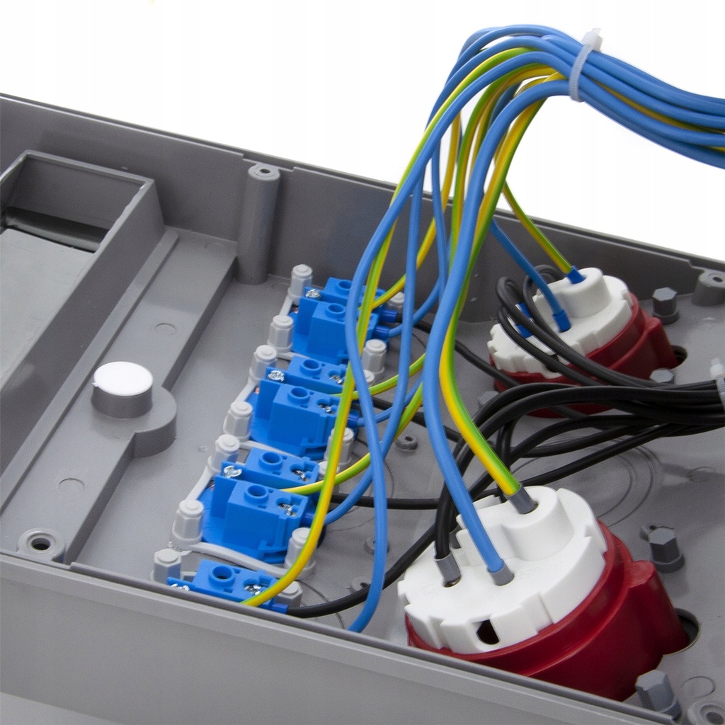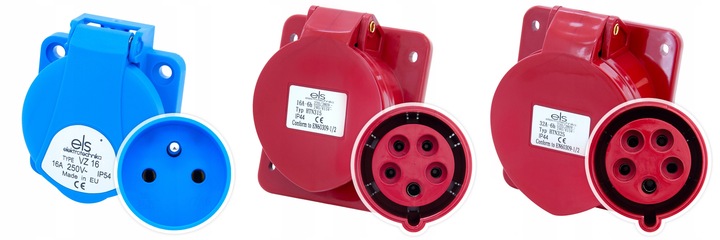 ✅ 4 x фіксована однофазна розетказ висновком 16A 230V IP54,повністю підключена до проводу LGY 2, 5 мм2 і захищена 2* C16 1P,