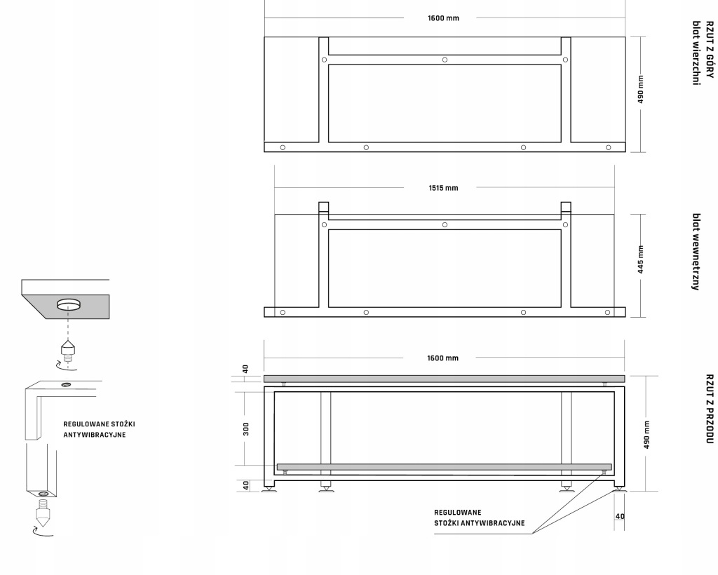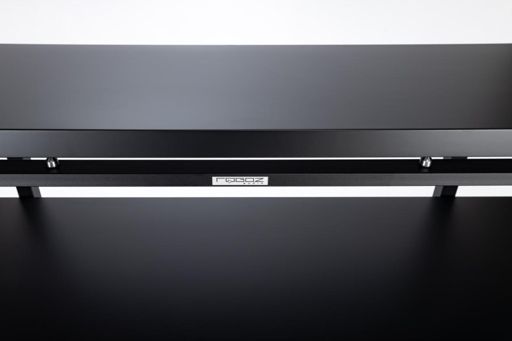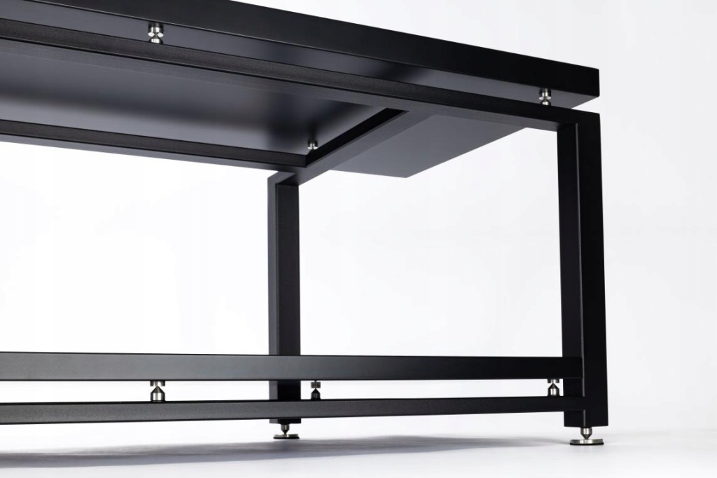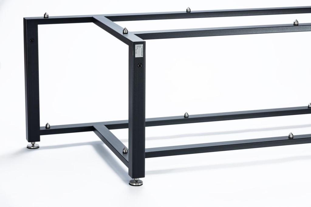 чотириногий столик, дворівневий, з стільницями з сендвіча товщиною 40 і 30 мм, пофарбованими в чорний колір (напівмат). Стійка баластована кварцовим піском (гвинтові отвори, розташовані на задній частині ніжок, дозволяють змінювати кількість і тип баласту). Колір каркаса-чорний (матовий, дрібна структура). Стіл може вмістити до 6 аудіопристроїв стандартної ширини.