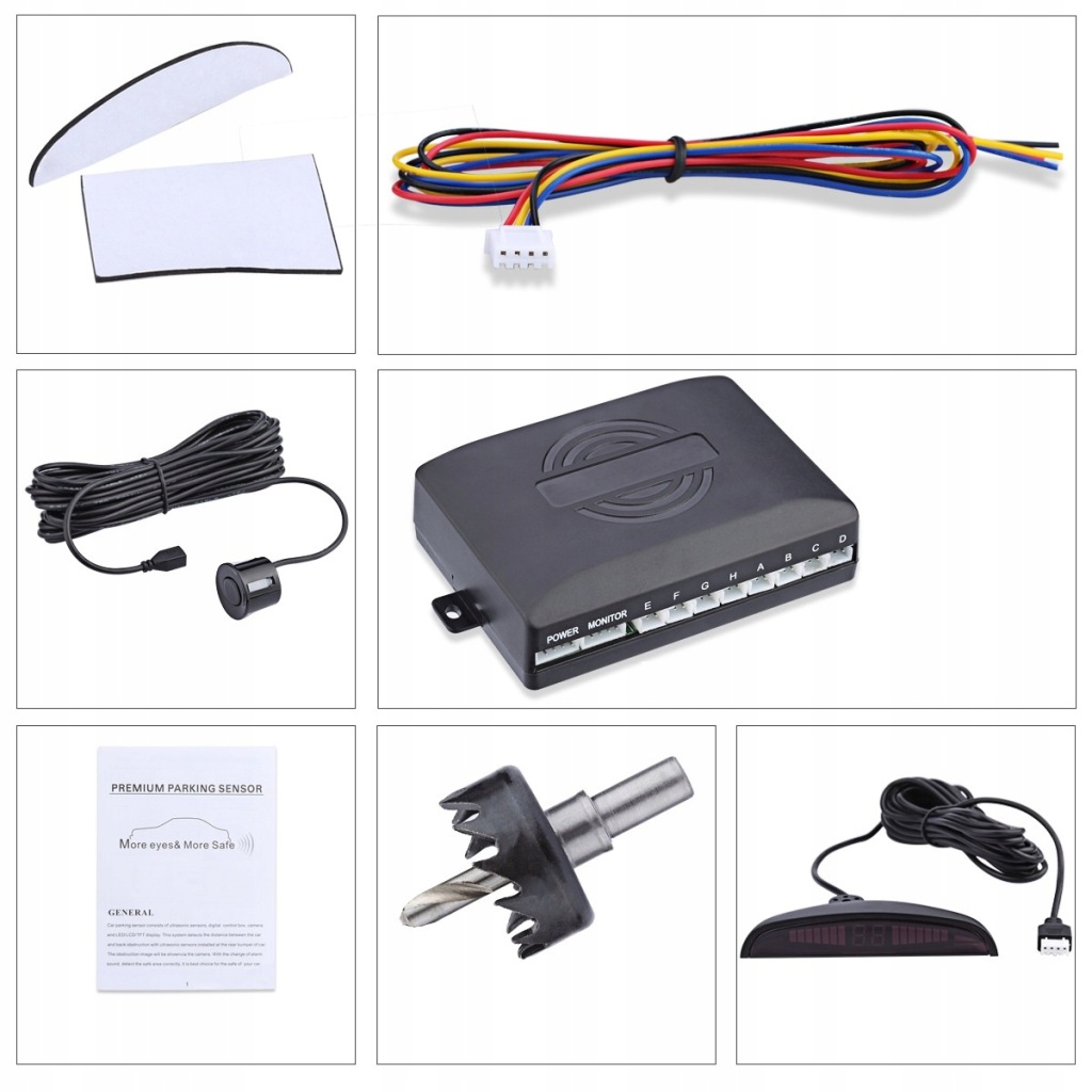 датчик паркування-це пристрій, що допомагає парковці і реверсу автомобіля. працює за принципом сонара-випромінює ультразвукові хвилі, які при відображенні від перешкоди дозволяють визначити, яку відстань відокремлює автомобіль від перешкоди. виявляє перешкоди від 2,5 м , показуючи відстань в цифровому вигляді на дисплеї . Крім того, ми почуємо звукову сигналізацію. чим ближче до перешкоди, тим більше світлодіодів загоряється і збільшується частота звуку. Залежно від того, на якій стороні автомобіля знаходиться перешкода - На дисплеї загоряються ліві або праві світлодіоди.при включенні заднього ходу на дисплеї відображається відстань від заднього перешкоди.