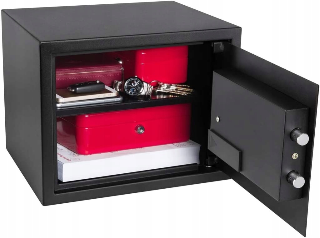 сейф оснащений зручною полицею, яка допоможе підтримувати порядок всередині.