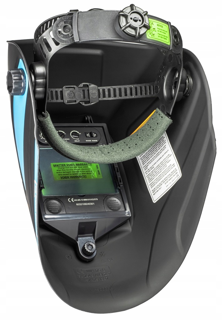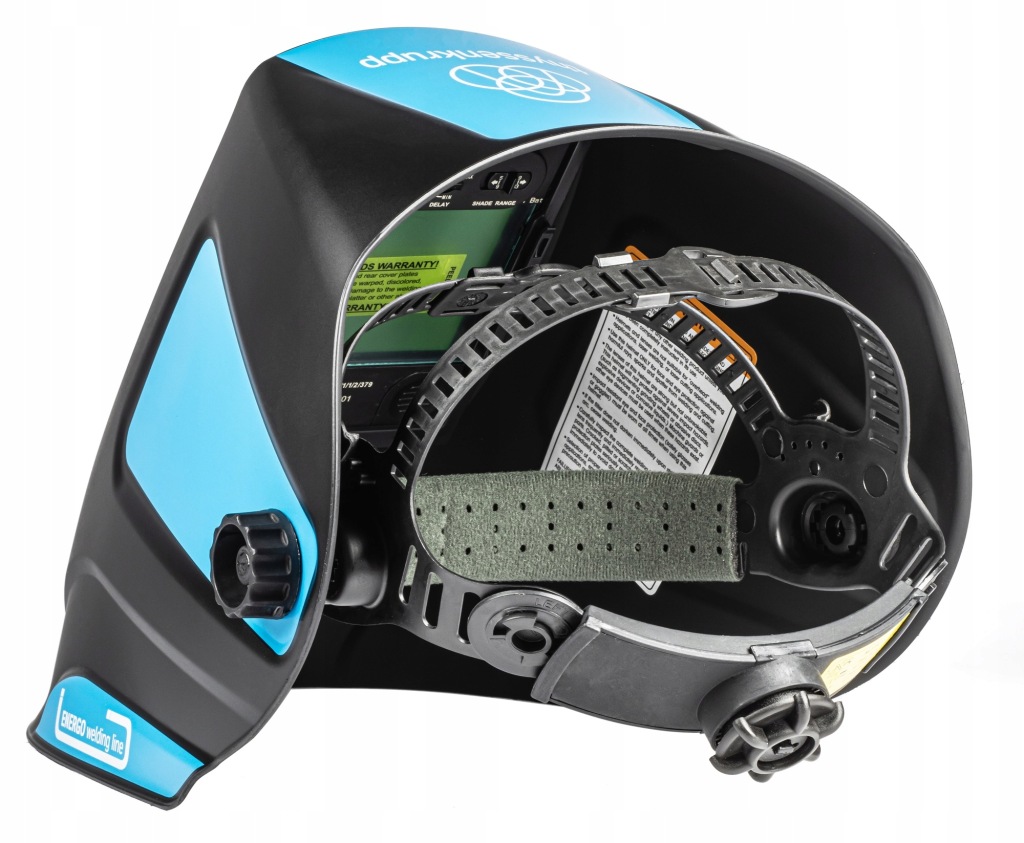 у місці контакту чола з головним болем ми використовували мʼяку прокладку, яка зменшує тиск на лоб і потовиділення. Таке рішення зводить до мінімуму відчуття дискомфорту і втоми при тривалому використанні маски. Повʼязка на голову також дуже легка, а матеріали, що використовуються для виготовлення повʼязки на голову, стійкі до високих температур, що надзвичайно важливо при зварюванні.