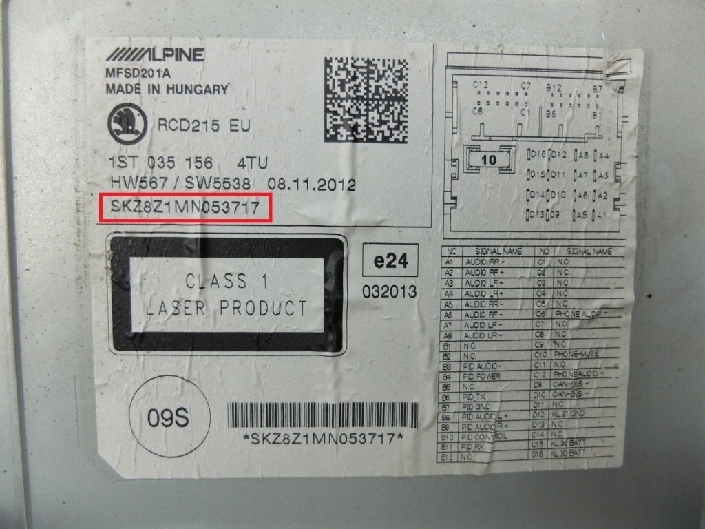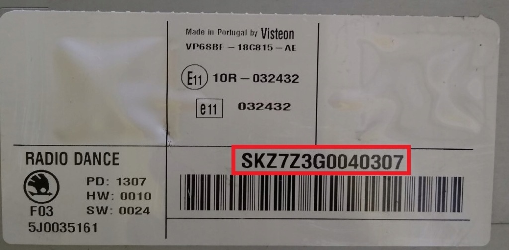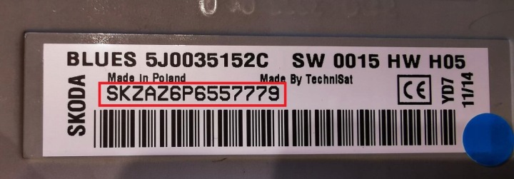 - радіоSkoda наприклад:SKZ1Z2H7986926, SKZ1Z7G5874125, SKZ6Z7H5785214