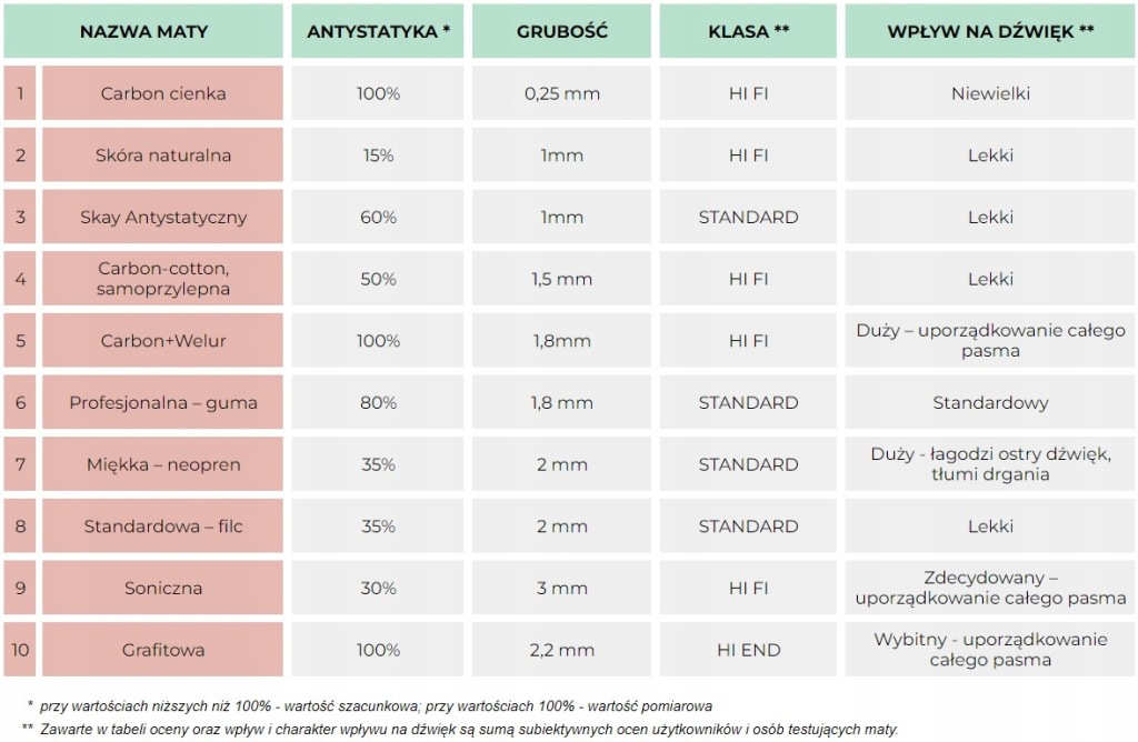 двошаровий вуглецевий килимок з підтвердженими звуковими властивостями.