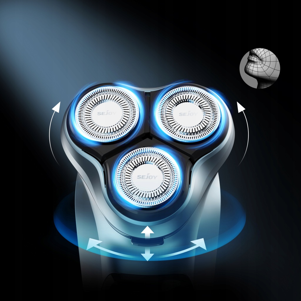 ⭐ ця Електробритва для чоловіків оснащена трьома плаваючими бритвеними головками 3d, які ідеально підходять для контурів обличчя, шиї і щелепи. Зменшує тертя об шкіру для гладкого і ніжного гоління.