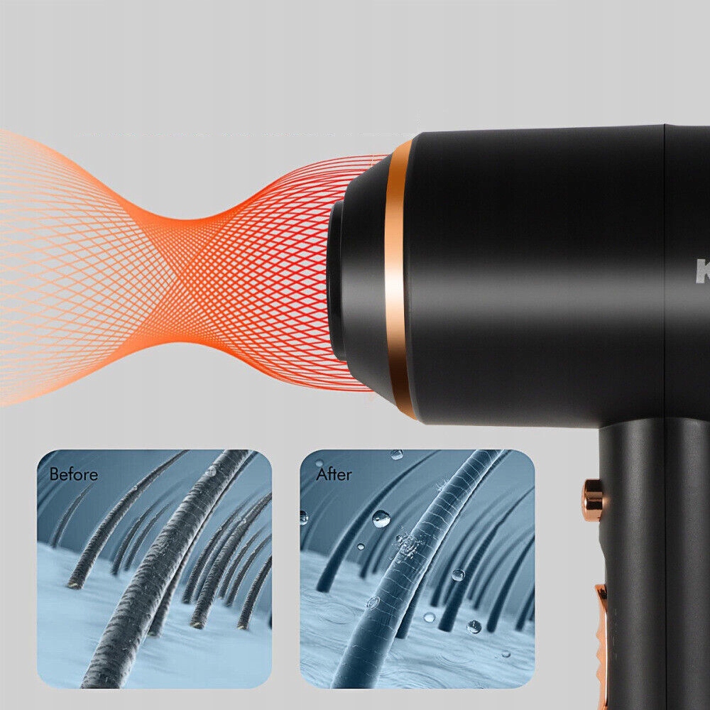 ⭐ однак не тільки сила є її активом. Наш фен оснащений функцією регулювання холодного вітру, яка дозволяє мʼяко охолоджувати волосся після використання гарячого повітря. Це ідеально підходить для людей з чутливою шкірою голови або волоссям, яким потрібно трохи охолонути і закріпити ефект укладання.