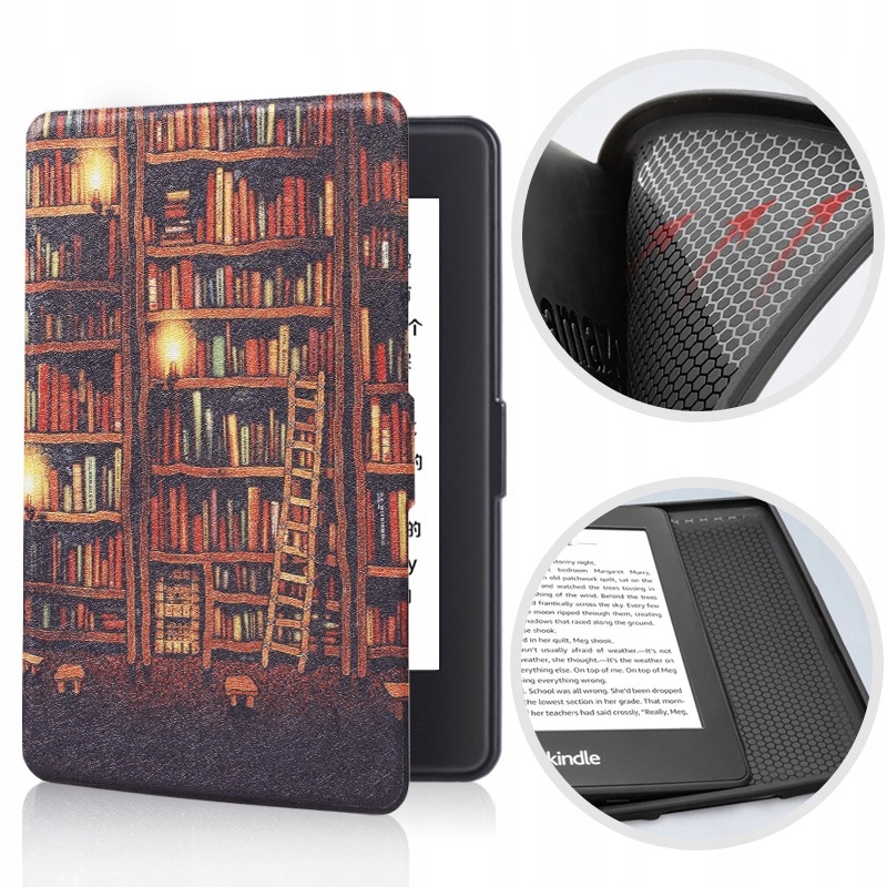 спеціальний чохол для читання бренду Kindle Paperwhite 1/2/3 виготовлений з синтетичної шкіри, силікону і приємного на дотик матеріалу зсередини корпусу. Конструкція корпусу забезпечує легку установку зчитувача і забезпечує його захист від подряпин, пилу, саден або відбитків пальців. Чохли доступні в декількох колірних варіантах з графікою.