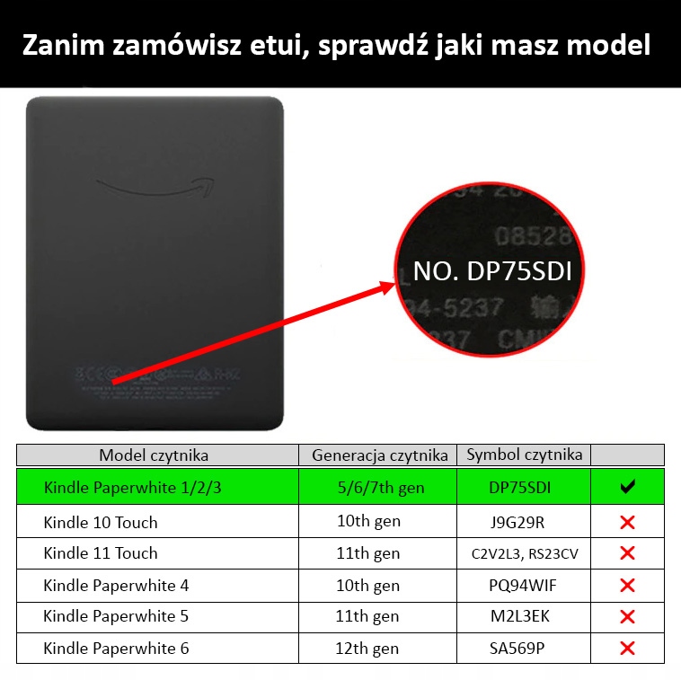 символ пристрою дляKindle Paperwhite 1/2/3 - це DP75SDI .