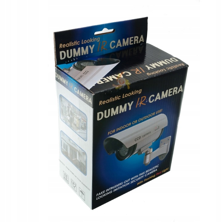 манекен є водонепроникним з замикається "козирком", виготовленим з так званого АБС. його виконання характеризується високою якістювикористовуваних матеріалів і увагою до деталей . Все виглядає дуже реалістично так що це може відлякати не одного злодія. призначений для внутрішнього і зовнішнього використання. до камери прикріплений регульований кронштейн, тому ви можете без праці правильно розташувати манекен.