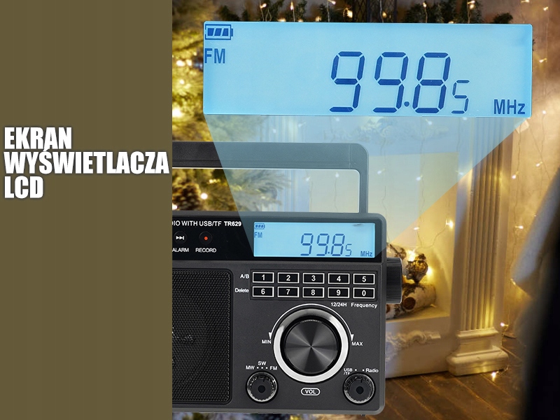 - Радіо повне FM/AM/SW; FM-радіо (76-108 Мгц), AM (522-1620 кгц); SW (2,3–21,19 Мгц); Приймач Радіо Світ має потужний чіп DSP; Площа готелю велика, завдяки чому ви завжди отримаєте найсвіжішу інформацію про зміни в погоді; своєчасно справляється з важким погода, наприклад, землетруси, урагани, торнадо і сильні грози