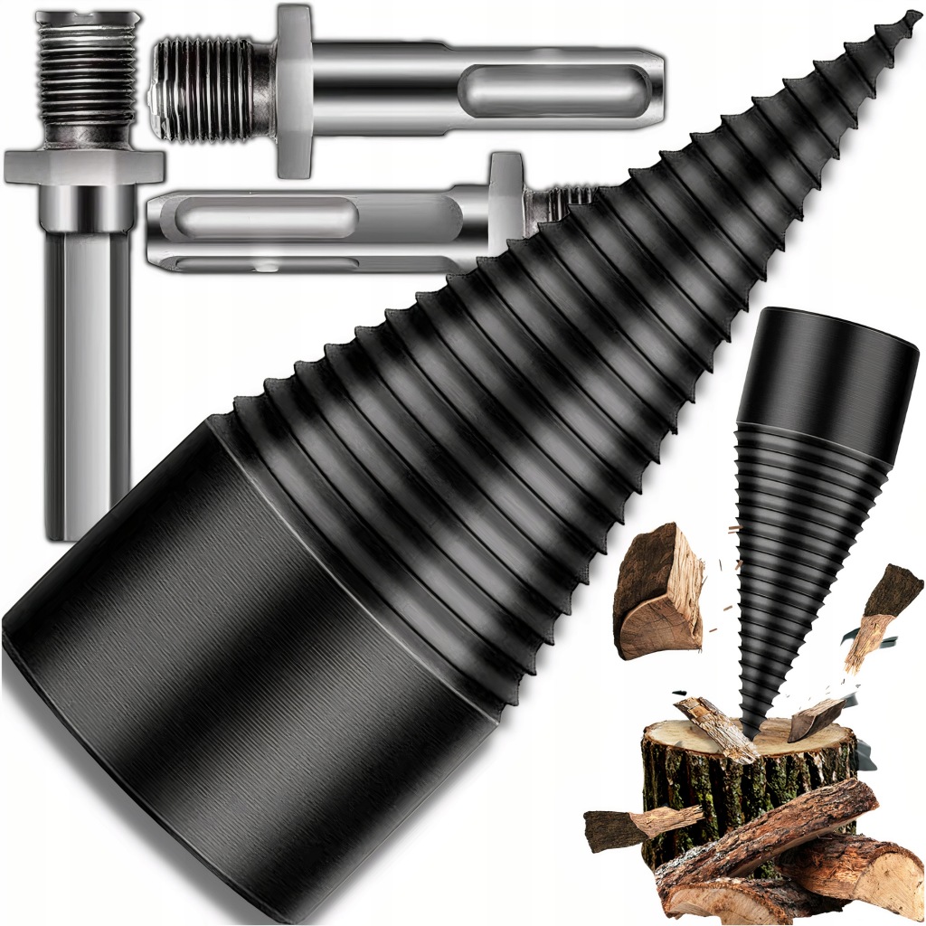 ✅ швидка і проста установка : в комплект входять три різних оправки / адаптера, які дозволяють швидко і легко закріпити шнек на більшості електроінструментів. Його можна швидко підготувати до роботи і почати розколювати деревину.
