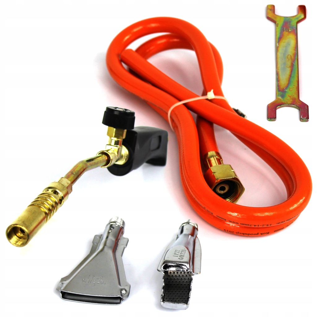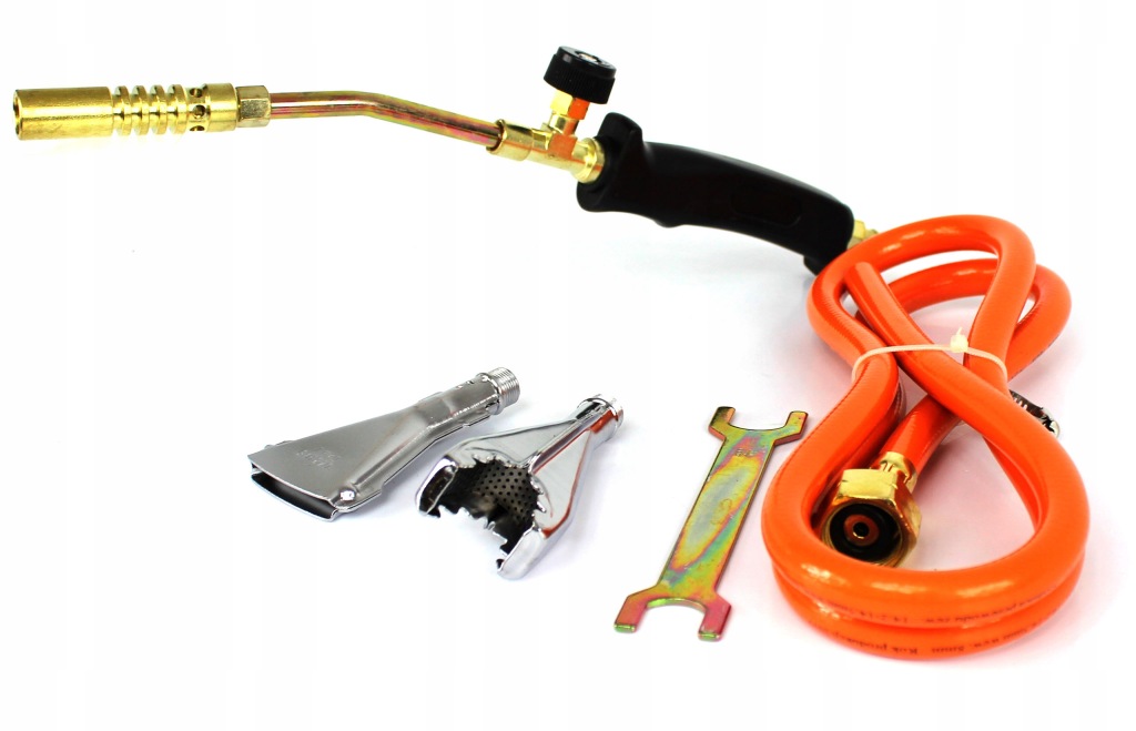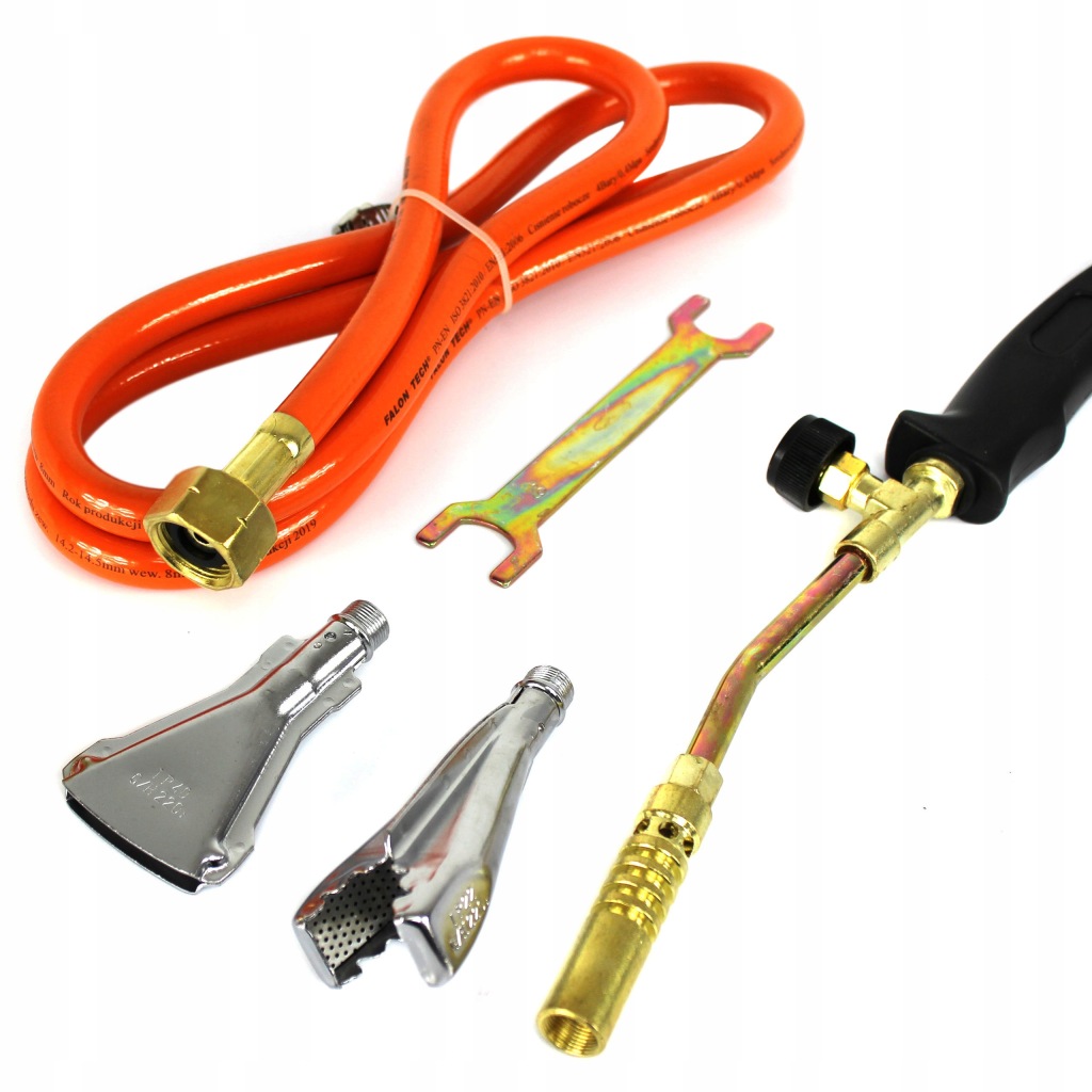 працює на газі пропан-бутан, оснащений рукояткою з регулюванням полумʼя. Теплова ефективність пальника становить 2 кВт, витрата газу 140 г / год, температура полумʼя 1850 °с. оснащений армованим шлангом довжиною 1,5 м з різьбленням для великого балона 25 кг.