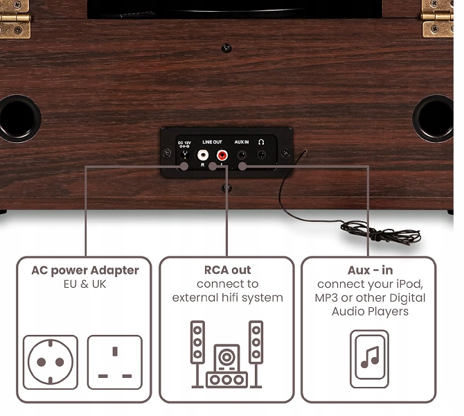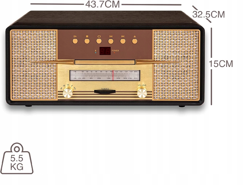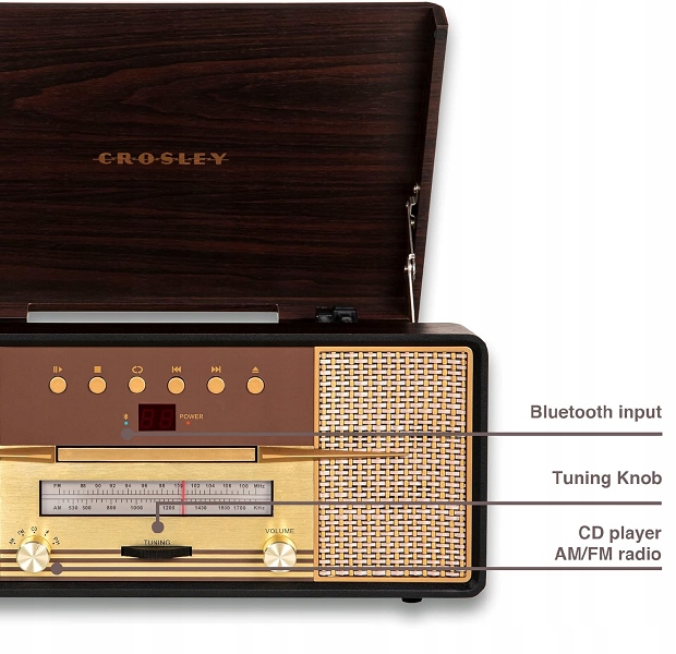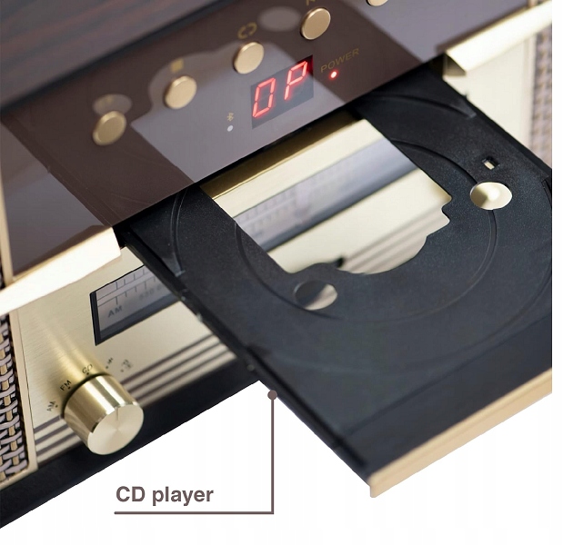 - крім відтворення вінілу має CD-привід, FM / AM радіо і функцію Bluetooth.