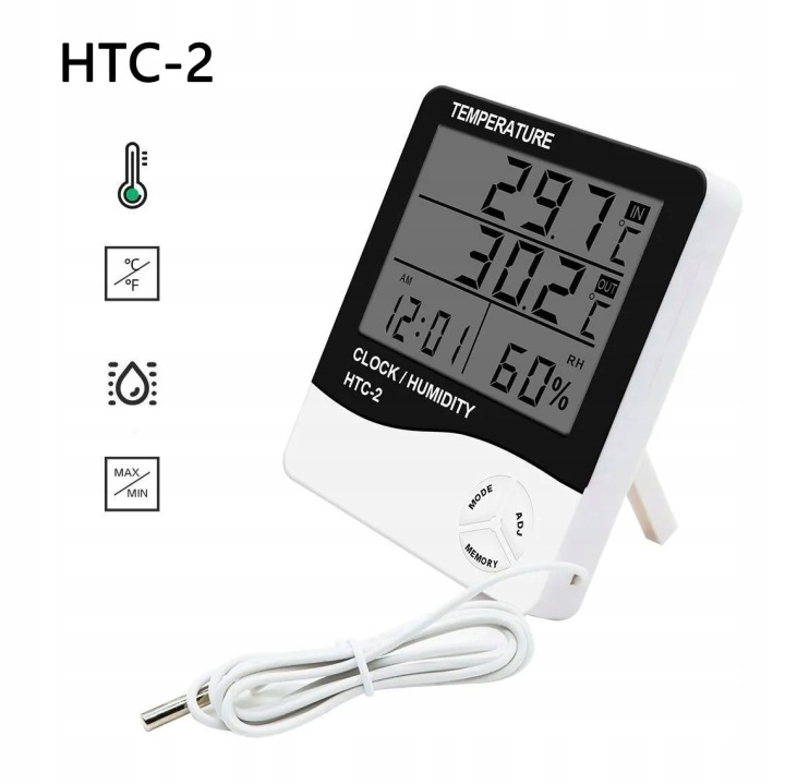 Метеостанція годинник термометр з зондом IN OUT, гігрометр