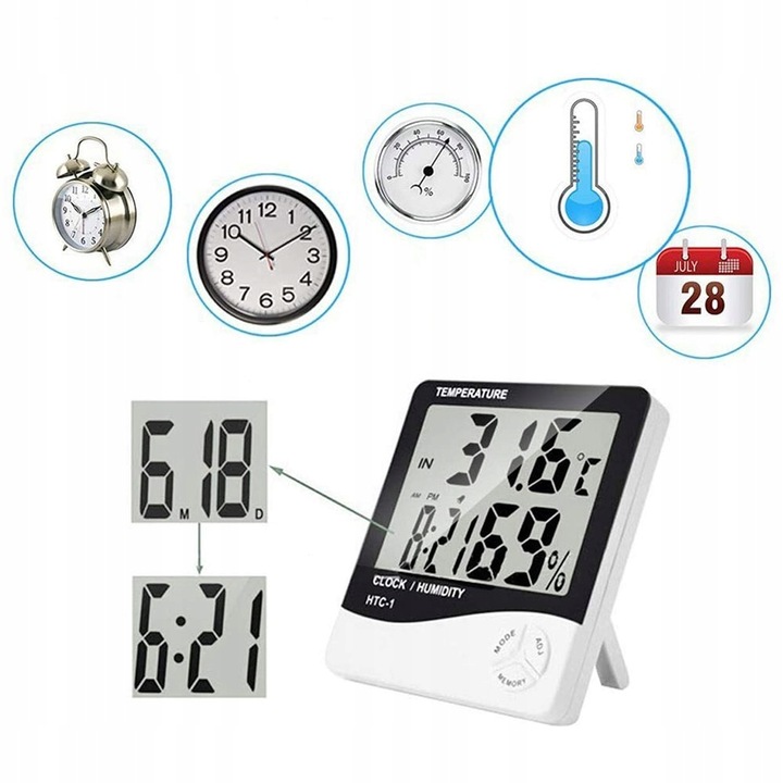 ЦИФРОВИЙ ТЕРМОМЕТР ГІГРОМЕТР МЕТЕОСТАНЦІЇ ГОДИННИК
