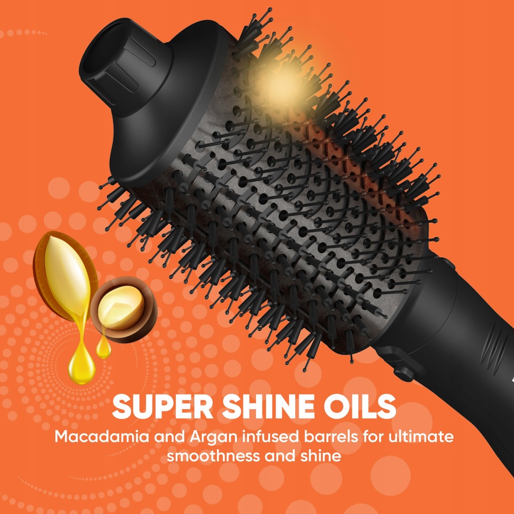 керамічна втулка, збагачена супер-глянцевими маслами (суміш масел макадамії і Аргана ), додасть вашому волоссю форму і блиск, щоб ви могли насолоджуватися відображає сяючим блиском.