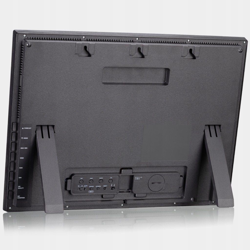 погода тут має першорядне значення-завдяки додатковій базовій станціїдо 8-денного метеоцентру 4CAST XL WLAN BRESSER ви можете отримати всі метеорологічні дані на додатковому, дуже великому, ширококутному кольоровому дисплеї з діагоналлю 48,3 см (19") . Особливо в великих приміщеннях - в офісах, школах, ресторанах, магазинах та інших обʼєктах - шикарний екран забезпечує гарне зображення. І все, що з ним повʼязано: просто підключіть додаткову станціюдо зовнішнього датчика 7-в-1 На сонячній енергії (не входить в комплект), і зʼявляться місцеві показання температури, вологості, швидкості вітру, напрямку вітру, опадів, рівня УФ-випромінювання і інтенсивності світла.