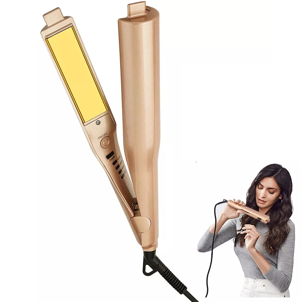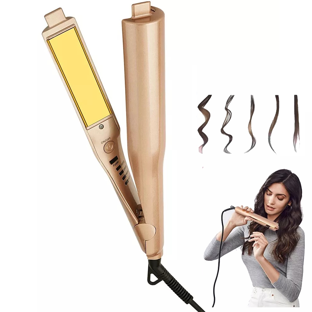 Hair Straightener, Styling-Gold, Titanium, Pro Ceramic Corn Roller. Особливості: швидке нагрівання, 30 секунд може досягати 230 C. короткий час може зробити різноманітність модних моделей, 15 секунд, щоб зігрітися. Чотириступінчаста температура, постійна температура догляду за волоссям. 360 градусів роторний шнур живлення (international Standard Core) для запобігання намотування. Negative Ion Hair Protection, Exhaust Hole Design, 30 Seconds Fast Heating, 4-ступінчаста технологія постійної температури. Specifications: Item Type: Hair Straightener Power: 25W-39W Commodity Quality Certification: 3C Temperature Controller: Digital Min. Temperature: 180 C Applicable Hair: Dry & amp; Wet Max. Temperature: 230c Power Cord Tail Assembly Mode: 360 Rotatable Dimensions of Heating Plate: 60x15mm Thermostat Adjustment Segments: Others Material: Ceramic Optimal Styling Time: 3-5 Min. Material of Thermal Plate / bar: Tourmaline Item Type: Iron Power Source: Electric Service Life of Thermal Plate / bar: More Than 50,000 Times Voltage: 100-240V (Dual Voltage) Diameter of Thermal Conductor: Less Than15 mm