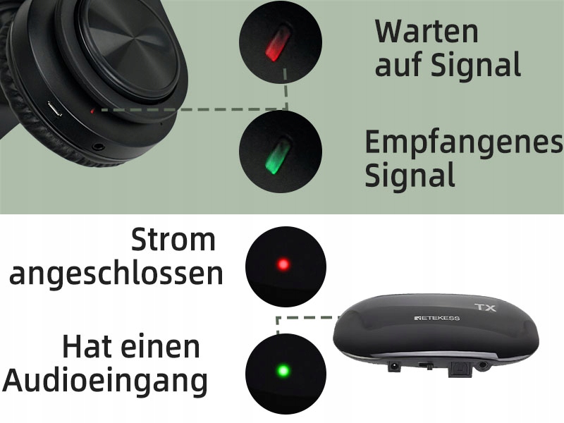 - Висока якість стереозвуку; радіочастотні навушники забезпечують багате і автентичне якість звуку; відсутність затримки звуку і точна Синхронізація звуку; цифровий сигнал гарантує чітку продуктивність у високих частотах