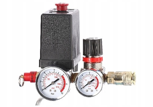 - оснащено 2 манометрами, 1 швидкорозʼємними пневматичними зʼєднувачами, редуктором, реле тиску і термозахистом