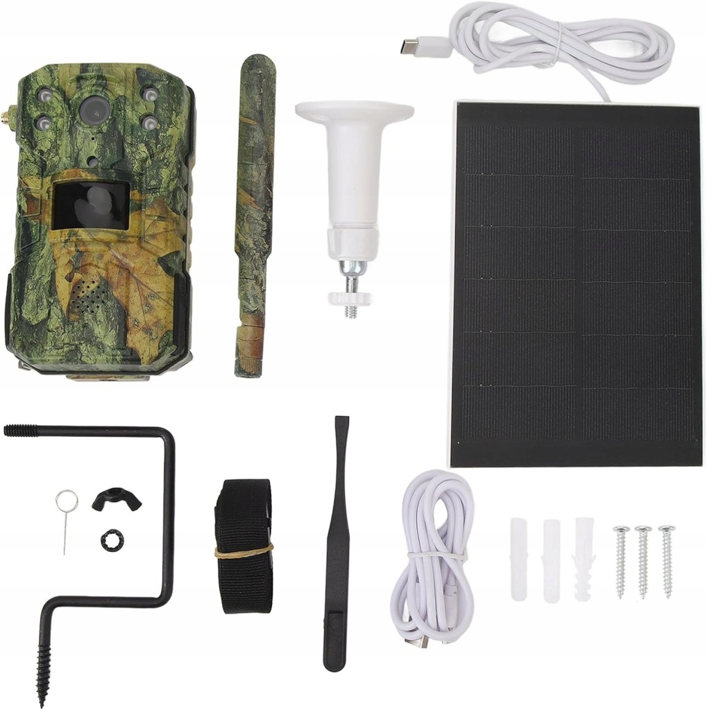- в комплекті: мисливська камера, кабель USB Type-C, антена, акумулятор 3 x, сонячна панель, penseta, сталеве кріплення, пластикове кріплення для панелі PV