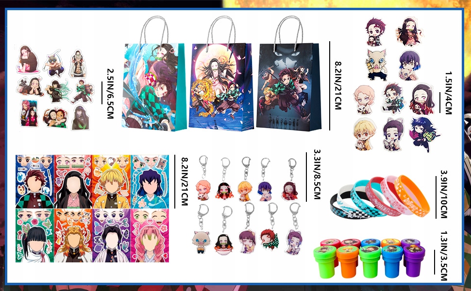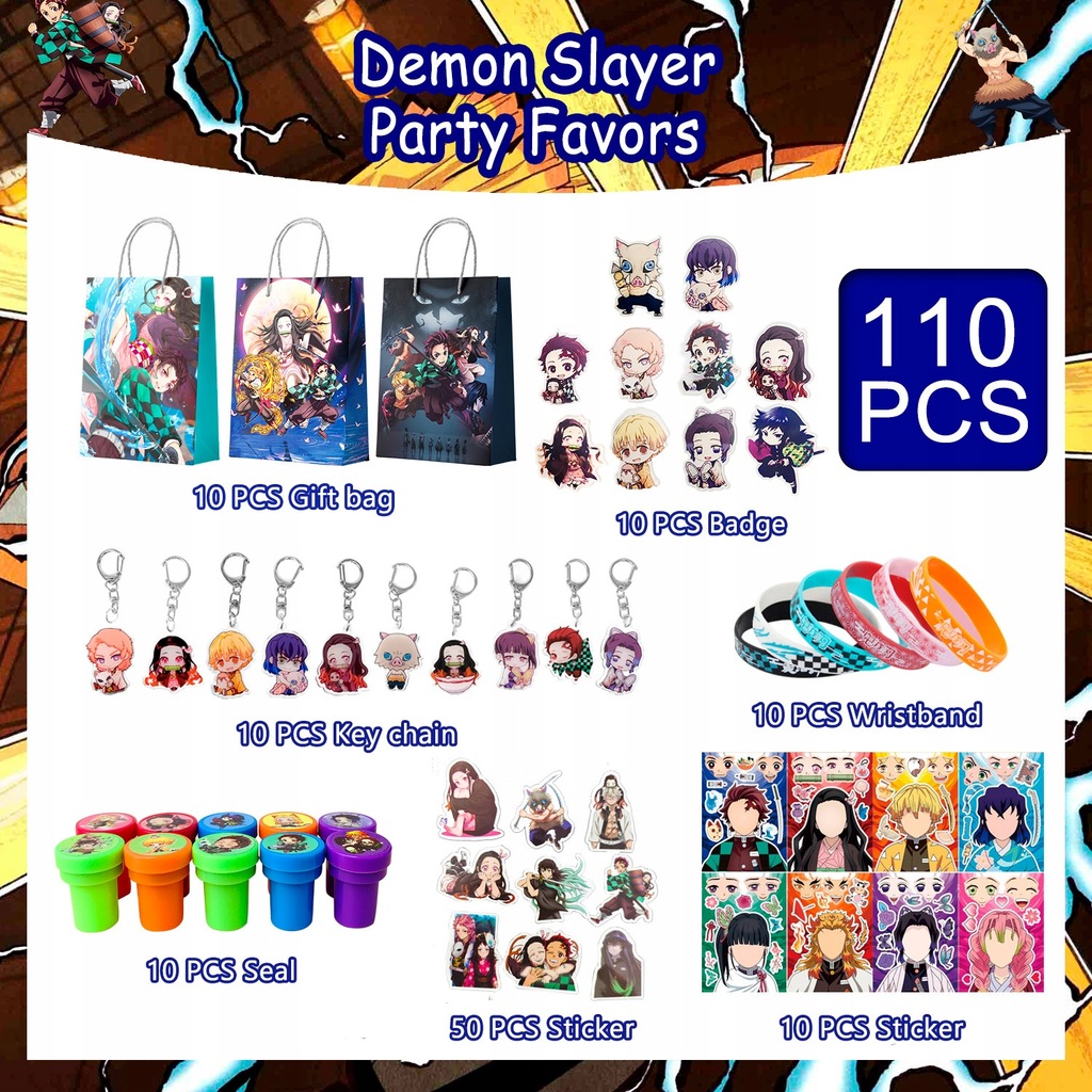 - набір подарунків на вечірку з темою Demon Killer наш набір подарунків на день народження з темою Demon Killer включає в себе 10 брелоків на вечірку з темою Demon Killer, 10 браслетів на тему Demon Killer, 10 наклейок на тему Demon Killer, 10 значків на день народження з темою Demon Killer, 10 печаток на тему Demon Killer і т.д. аксесуари з темою демонів.