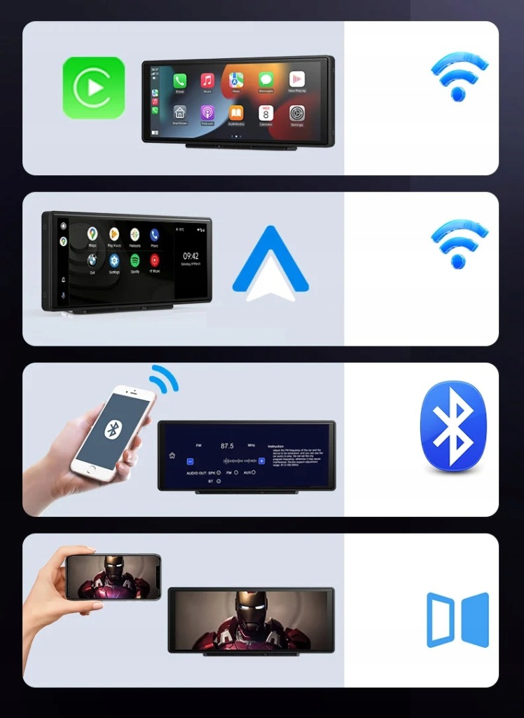 - бездротовий CarPlay Android Automatic, підходить для мобільних телефонів Apple і Android, ви можете синхронізувати сторінки мобільних телефонів, коли ви сідаєте в автомобіль